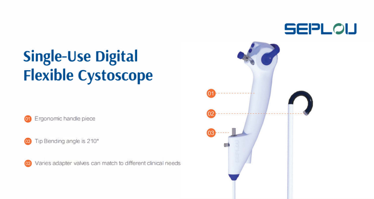 High-resolution single-use digital flexible cystoscope for clear visualisation of ureteral calculi and intraluminal structures. Eliminates cross-infection risks and reprocessing costs.